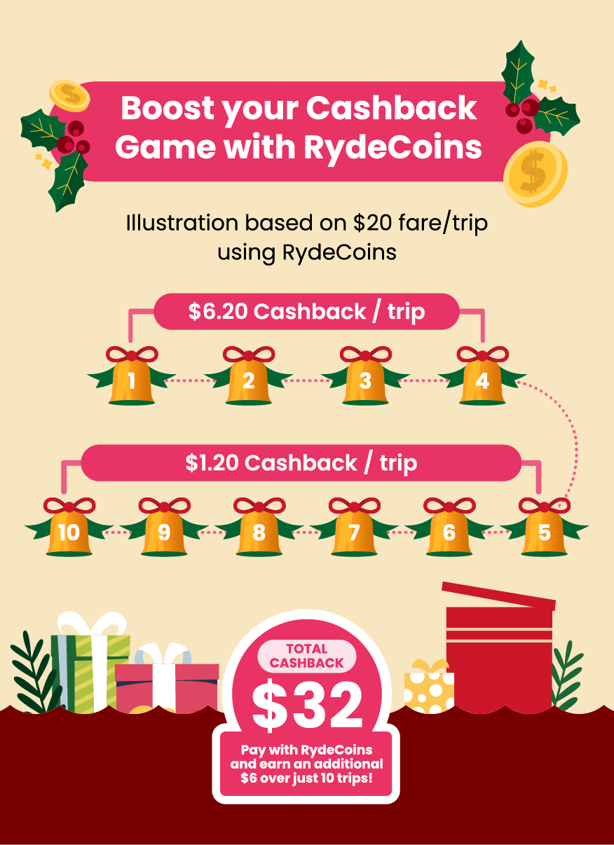 *Cashback will be automatically credited as RydeCoins in your wallet.